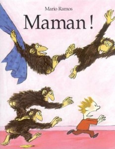 Maman ! de Mario Ramos pour Fleurine. Je ne pouvais pas passer à côté. Dommage qu’il n’y ait pas la version petite fille 😉 Un petit garçon appelle sa maman à chaque page. Sa maison est remplie d’animaux insolites dans des situations cocasses. A la fin, vous apprenez pourquoi il a si peur… Après cela, on découvre les images en petit et on apprend à compter.